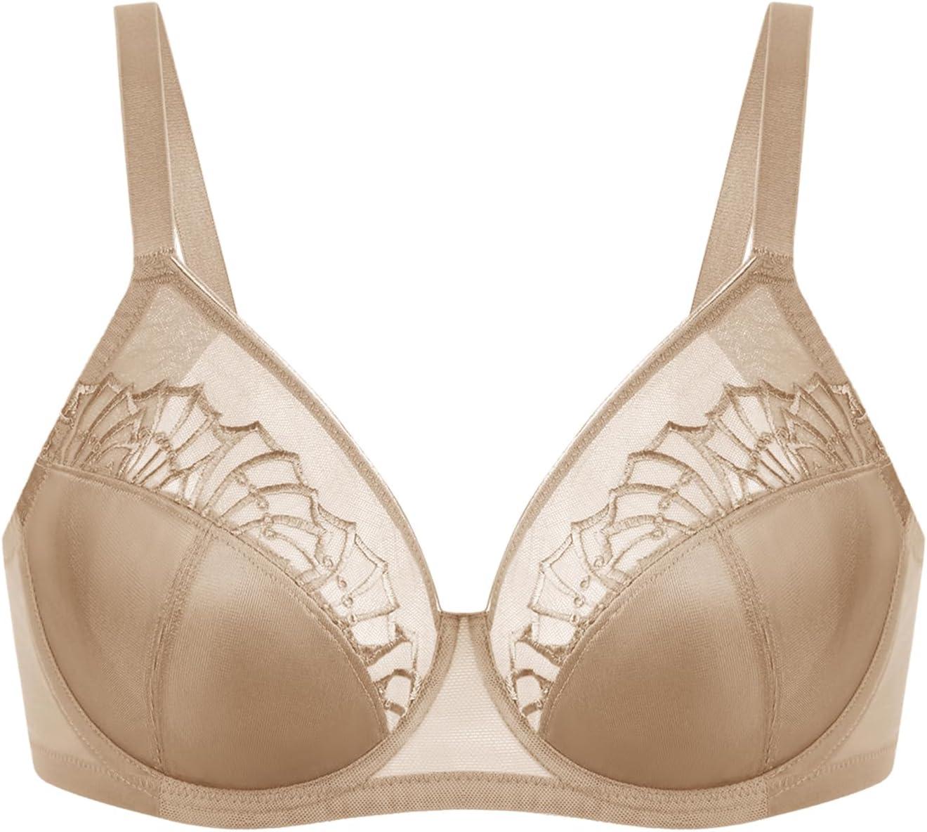 HSIA Minimizer Bras for Women, Full Coverage Embroidered Bras Plus Size Bra for Heavy Breasts Unlined Bra with Underwire(Dark Beige)