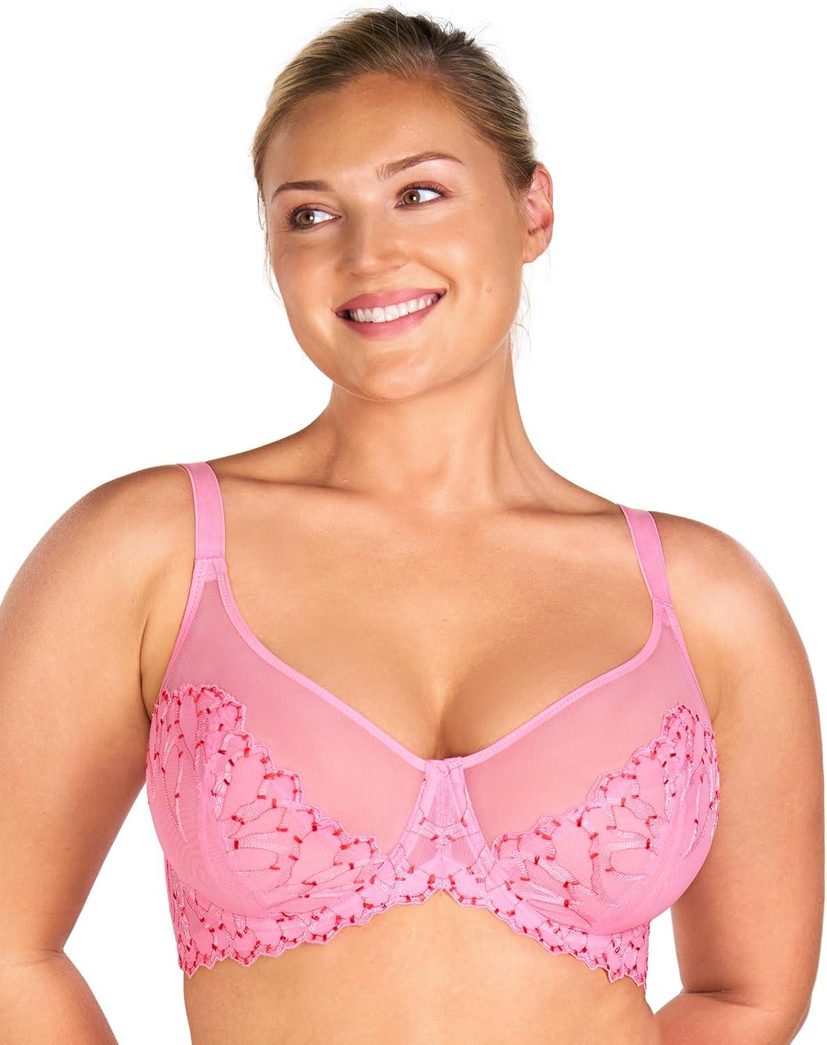 imageHSIA Minimizer Bras for Women Full Coverage Embroidered Bras Plus Size Bra for Heavy Breasts Unlined Bra with UnderwireGeranium Pink