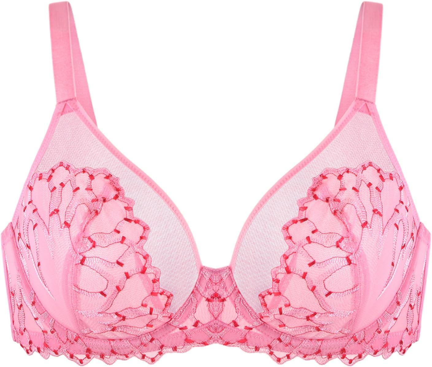 HSIA Minimizer Bras for Women, Full Coverage Embroidered Bras Plus Size Bra for Heavy Breasts Unlined Bra with Underwire(Geranium Pink)