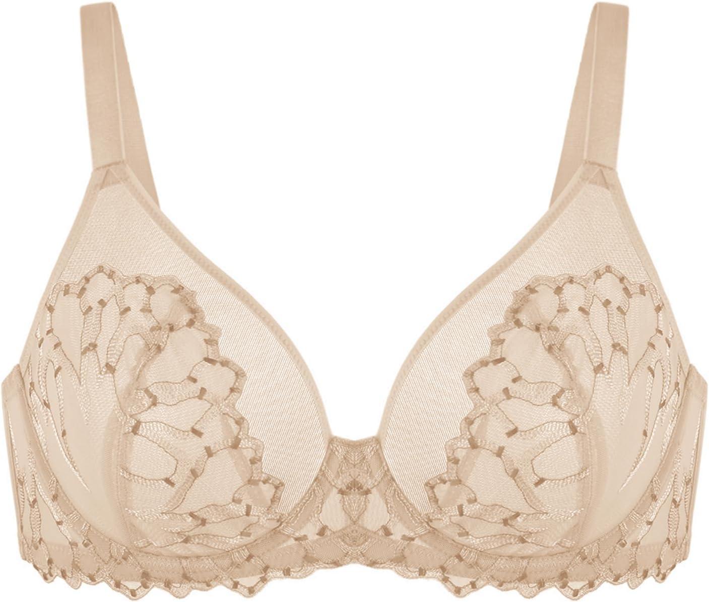HSIA Minimizer Bras for Women, Full Coverage Embroidered Bras Plus Size Bra for Heavy Breasts Unlined Bra with Underwire(Warm Beige)