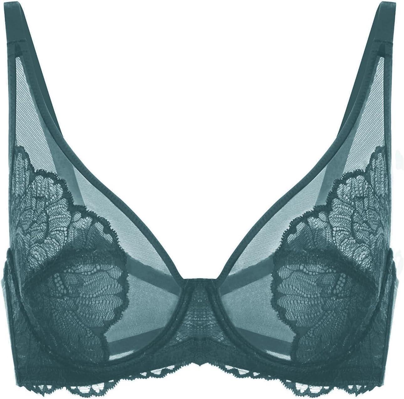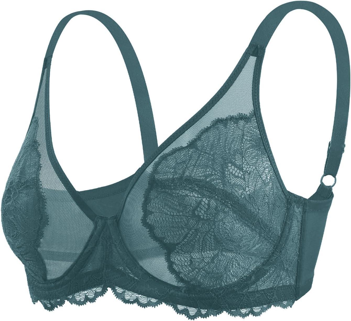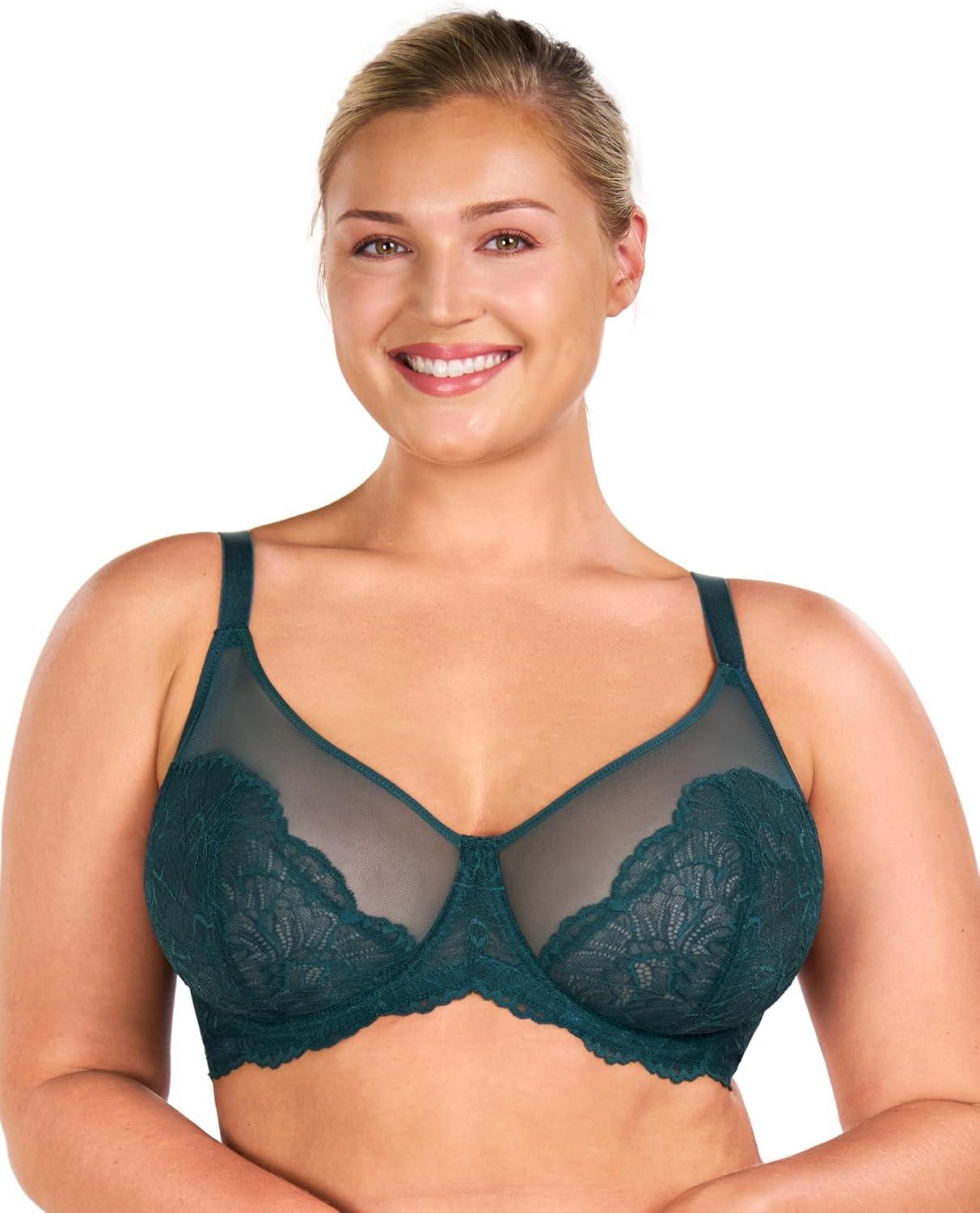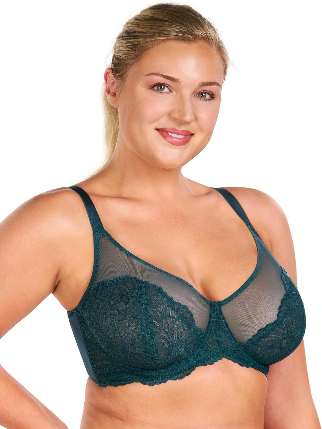 imageHSIA Minimizer Bras for Women Full Coverage Lace Bra for Heavy Breasts Unlined Bras with UnderwireBalsam Blue