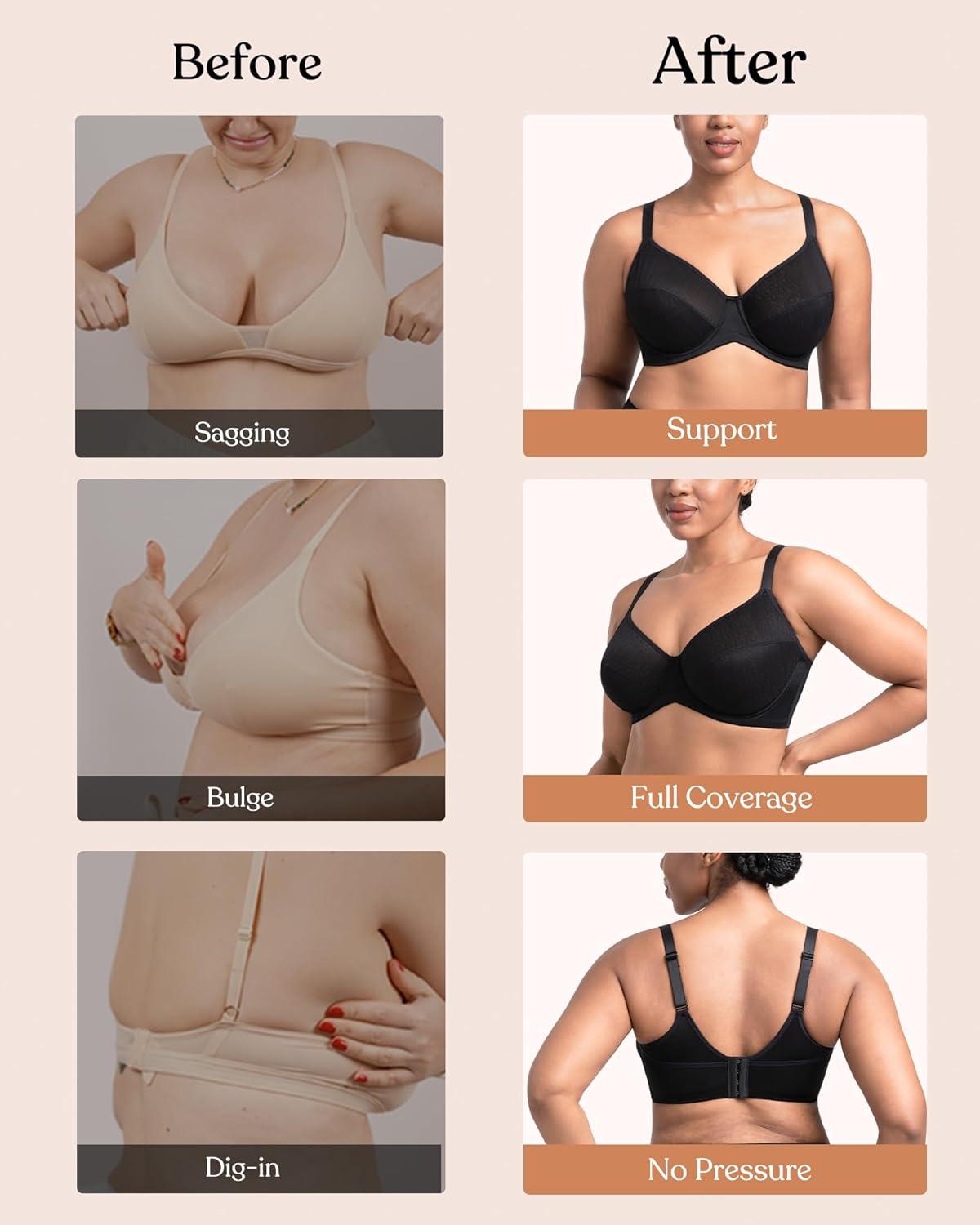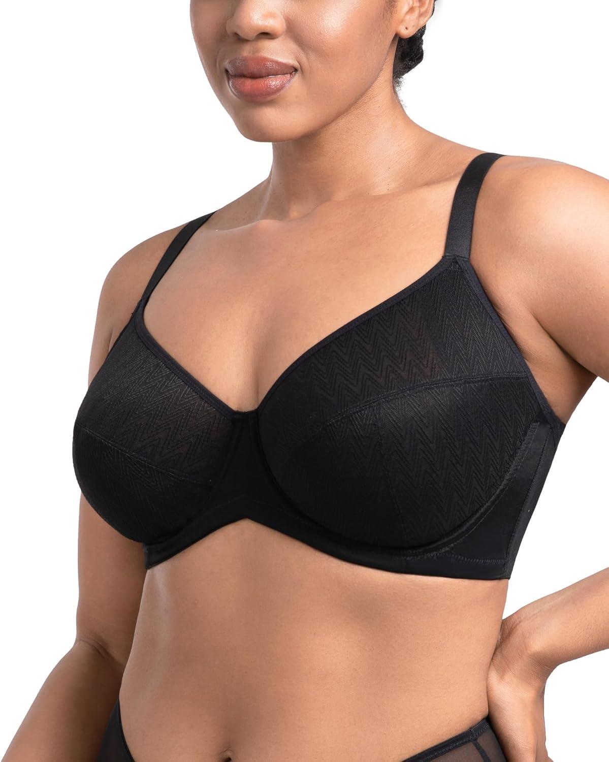 imageHSIA Minimizer Bras for Women Full Coverage Plus Size Underwire Unlined Mesh Jacquard Bra for Big BustedBlack