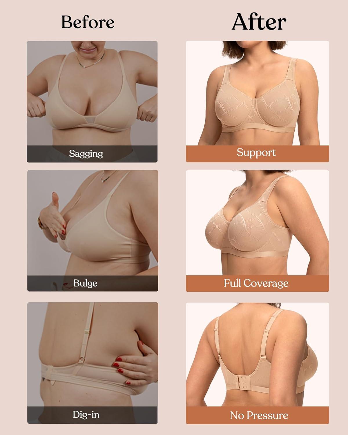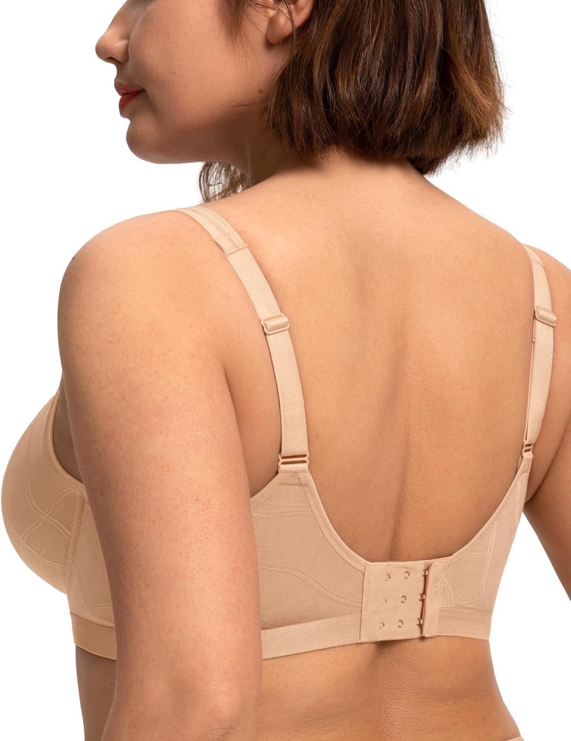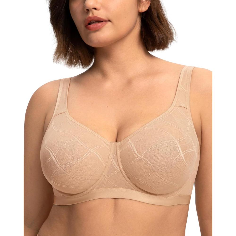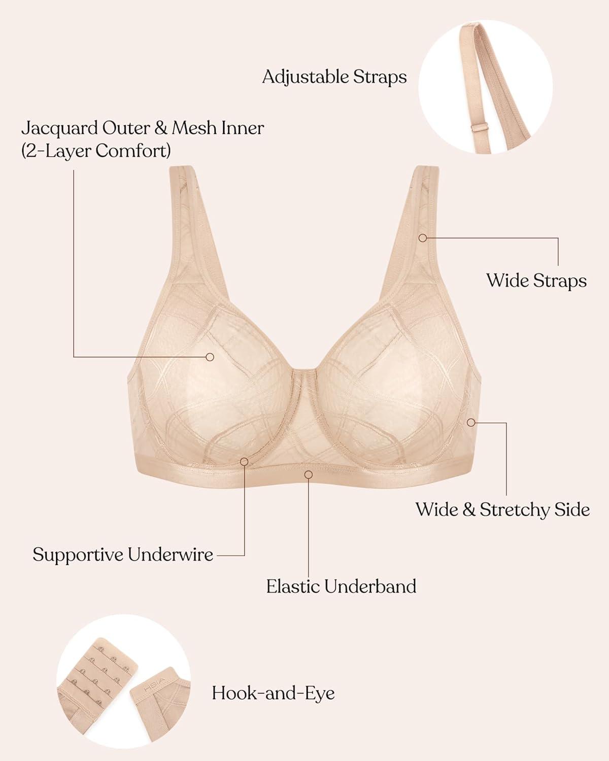 imageHSIA Minimizer Bras for Women Full Coverage Underwire Plus Size Unlined Mesh Jacquard Bra with Wide StrapsLight Beige