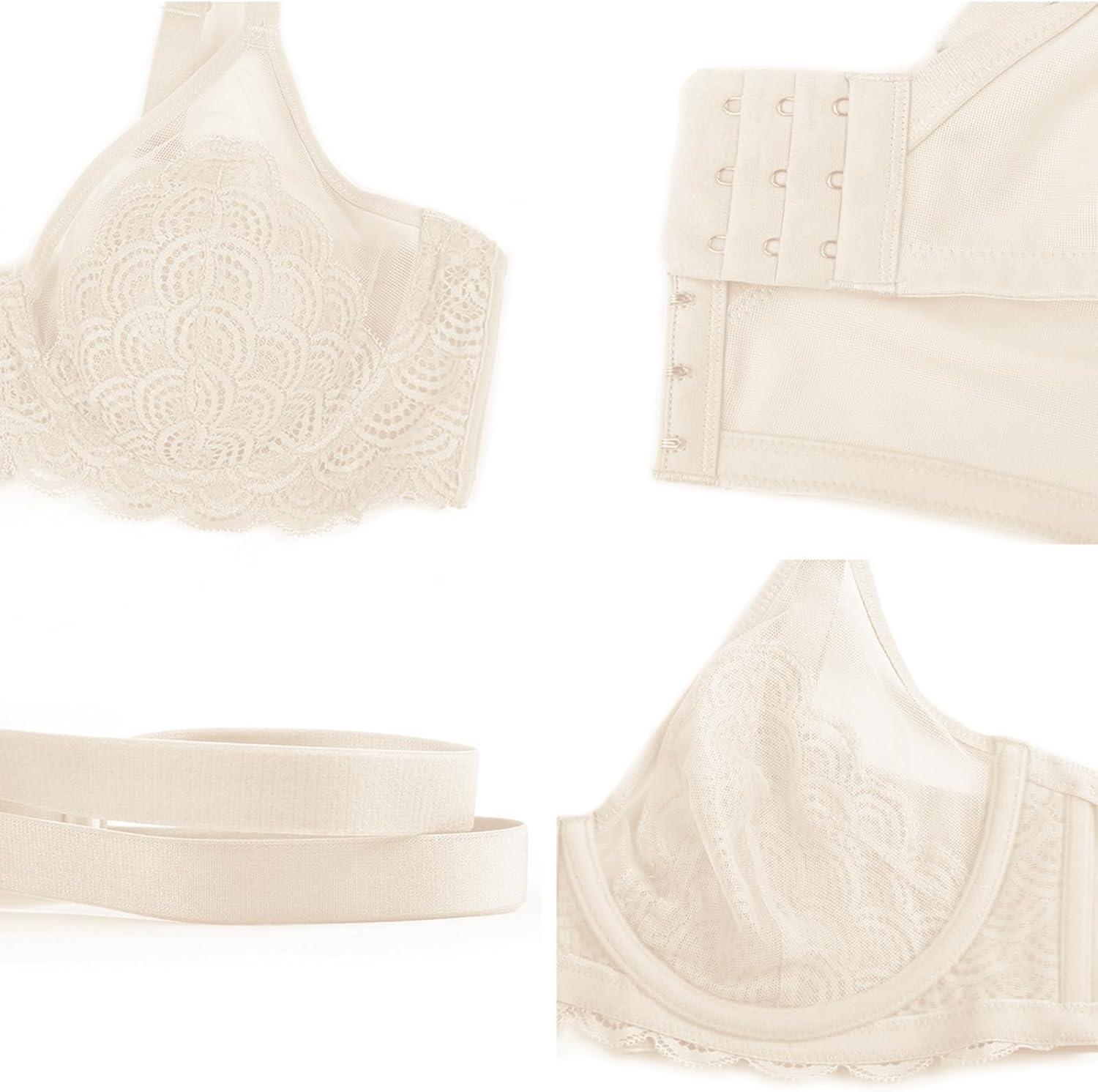 HSIA Minimizer Bras for Women Large Bust Full Coverage Lace Plus Size Bra - Mermaid Scales(Light Beige)