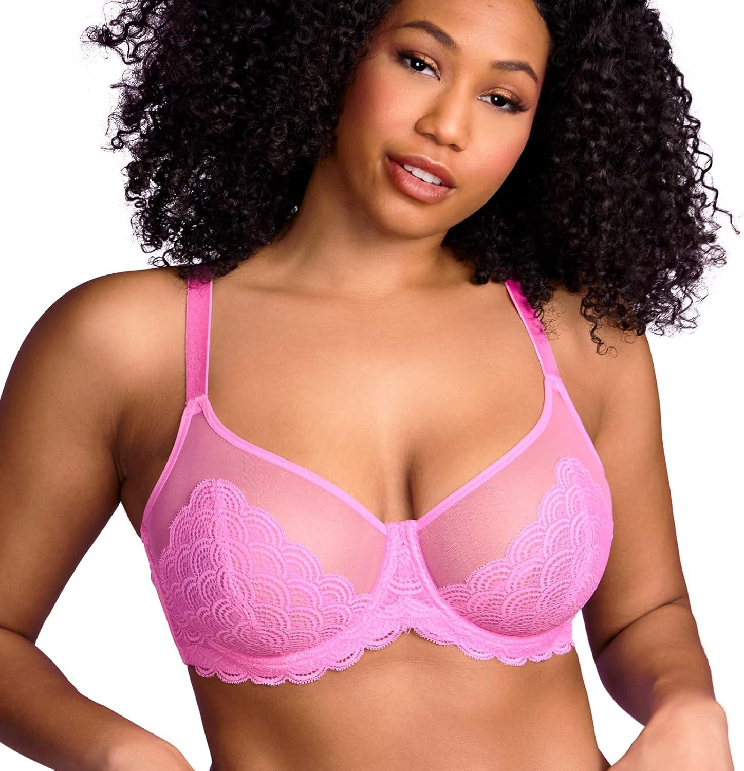 imageHSIA Minimizer Bras for Women Large Bust Full Coverage Lace Plus Size Bra  Mermaid ScalesMedium Pink