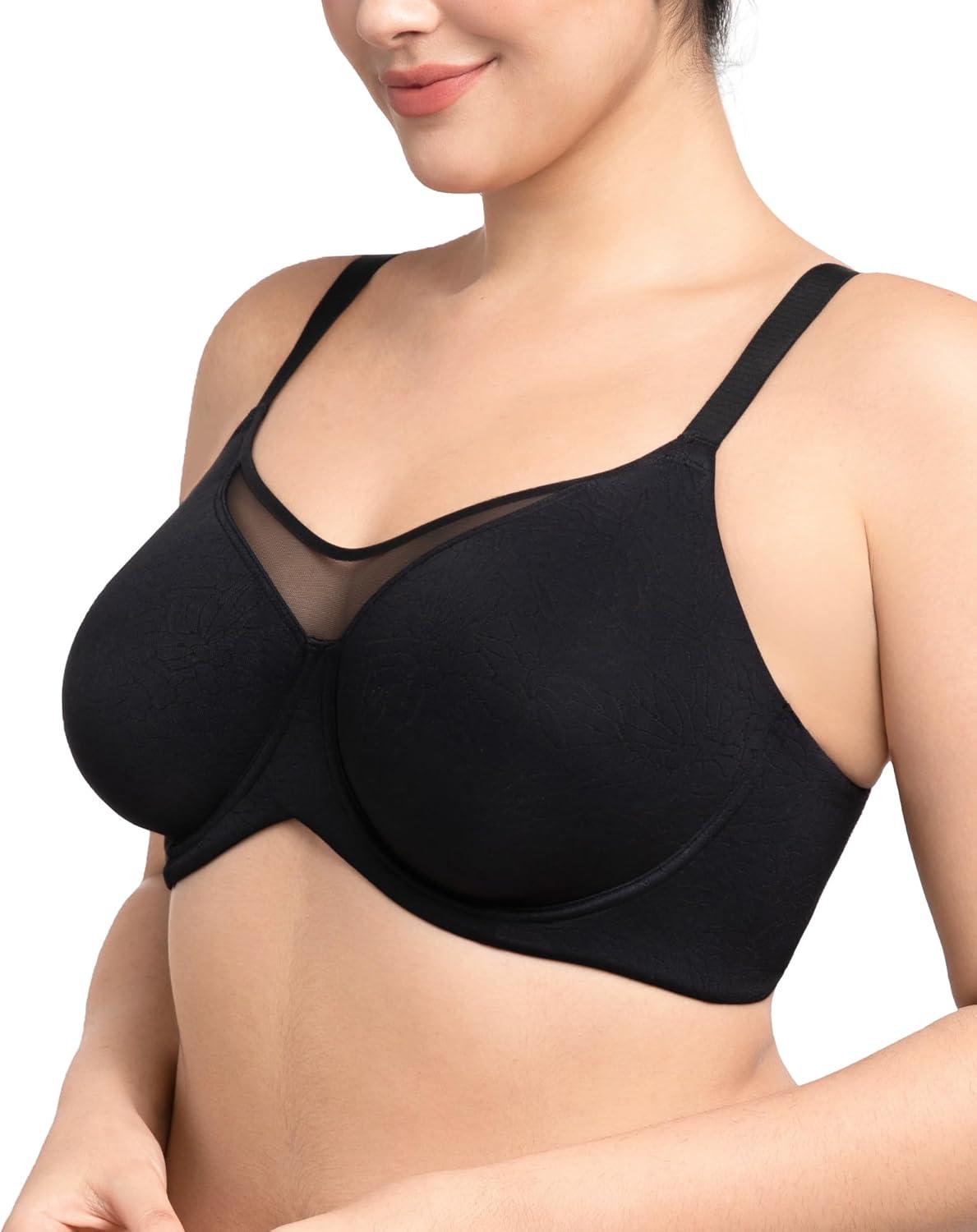 HSIA Minimizer Bras for Women Plus Size, Full Coverage Coolcomfort T Shirt Unlined Bra with Underwire for Heavy Breast(Black With Floral Print)