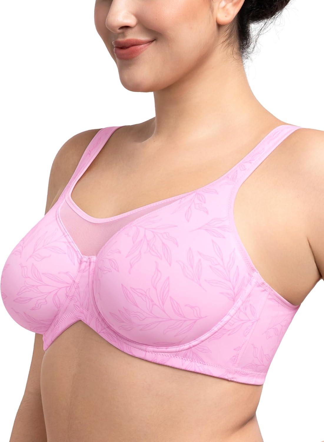HSIA Minimizer Bras for Women Plus Size, Full Coverage Coolcomfort T Shirt Unlined Bra with Underwire for Heavy Breast(Blush Pink Leaf Print)