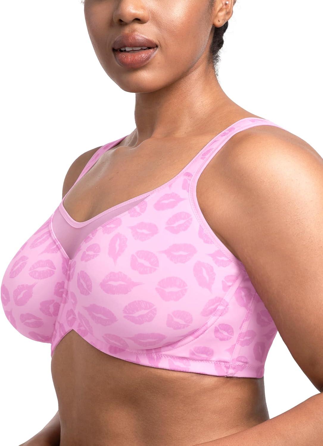 HSIA Minimizer Bras for Women Plus Size, Full Coverage Coolcomfort T Shirt Unlined Bra with Underwire for Heavy Breast(Blush Pink Lip Print)