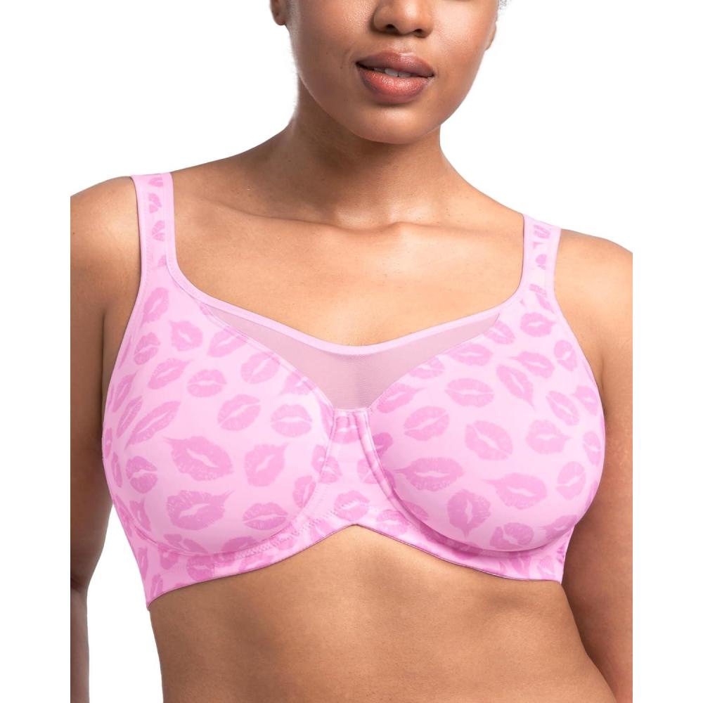 imageHSIA Minimizer Bras for Women Plus Size Full Coverage Coolcomfort T Shirt Unlined Bra with Underwire for Heavy BreastBlush Pink Lip Print