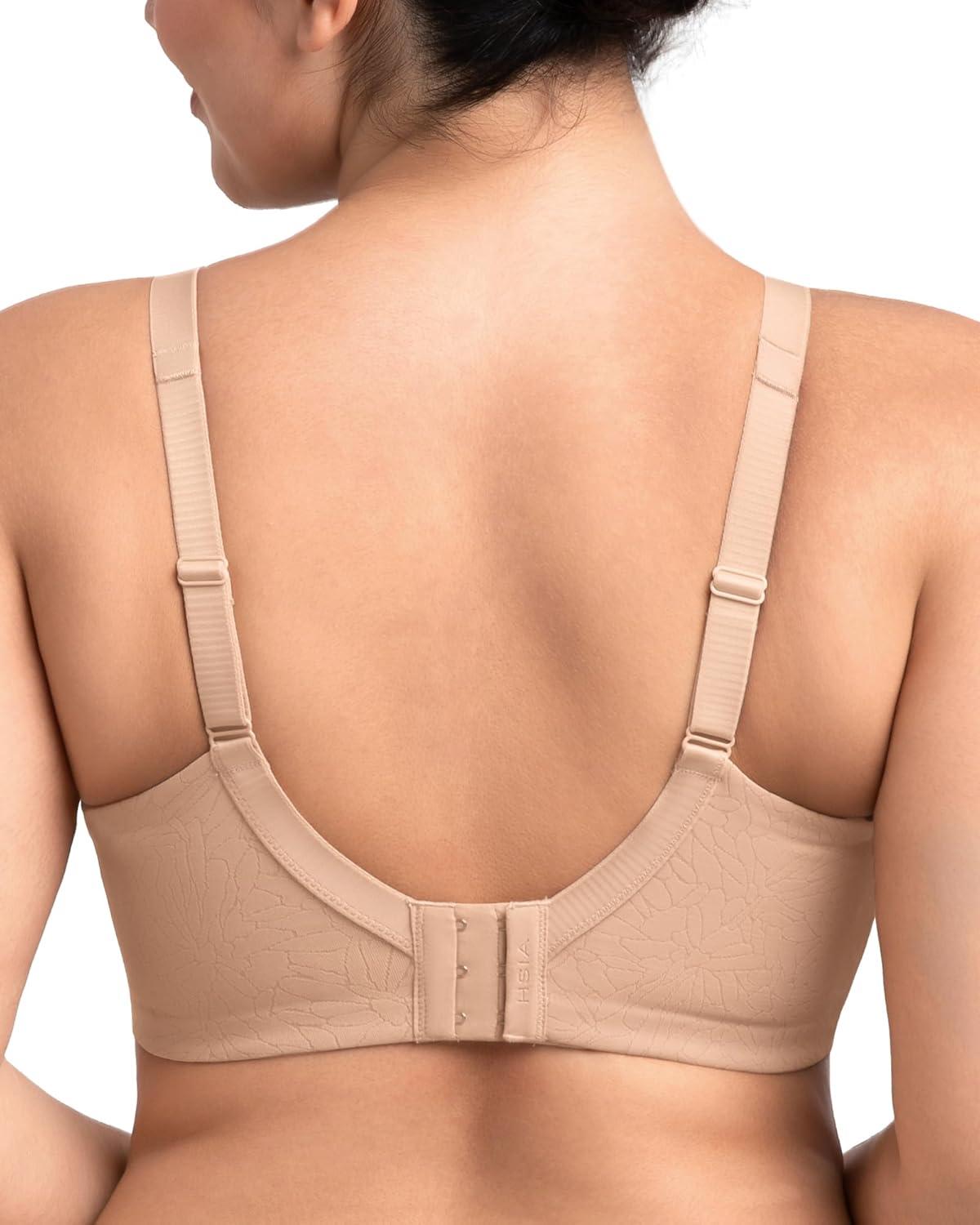 HSIA Minimizer Bras for Women Plus Size, Full Coverage Coolcomfort T Shirt Unlined Bra with Underwire for Heavy Breast(Dark Beige With Floral Print)