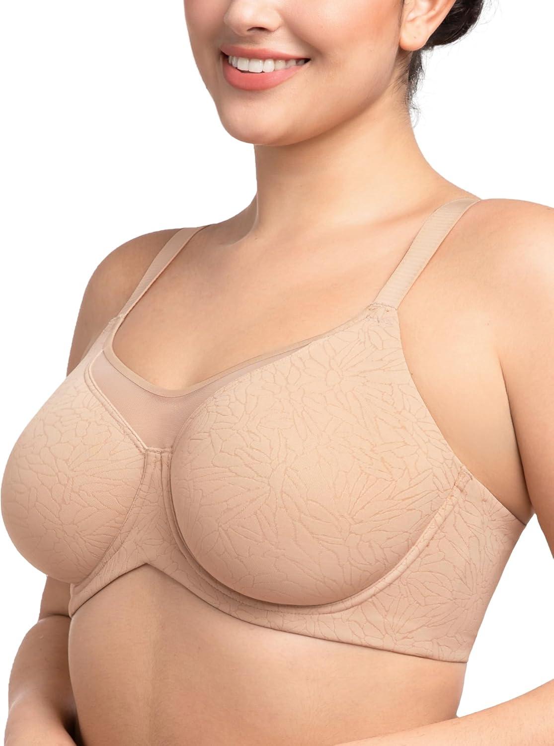 HSIA Minimizer Bras for Women Plus Size, Full Coverage Coolcomfort T Shirt Unlined Bra with Underwire for Heavy Breast(Light Beige With Floral Print)