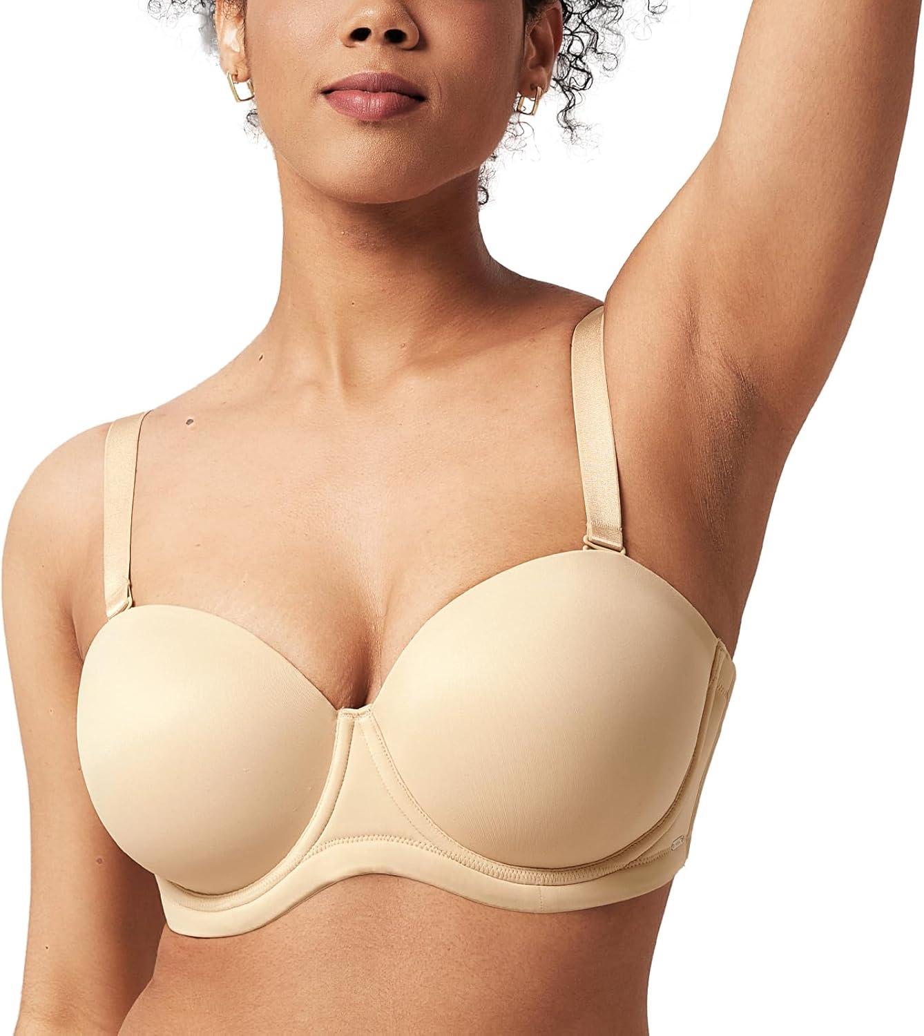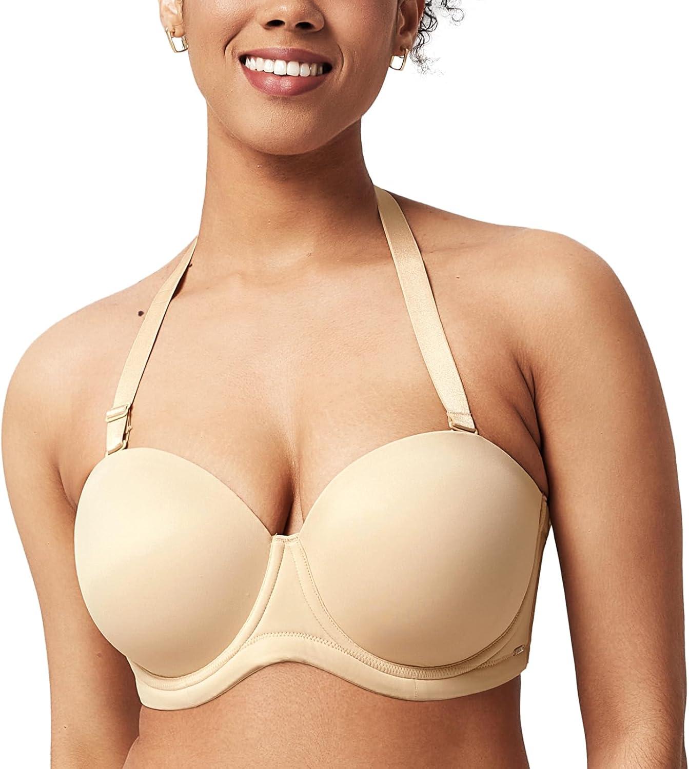 HSIA Strapless Bras for Large Bust Women Convertible Bra for Heavy Breast Strapless Bra Supportive Underwire(Beige)