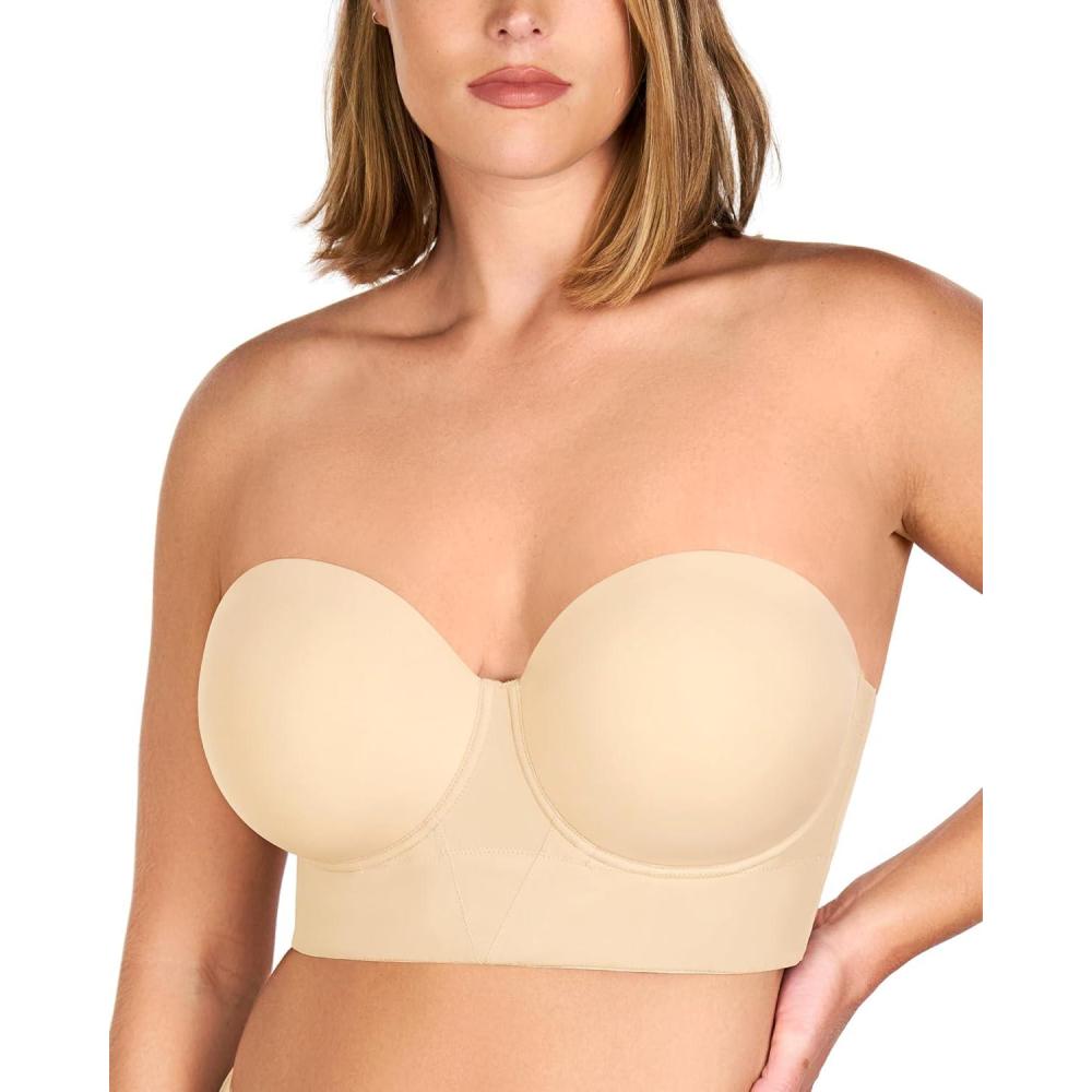 HSIA Strapless Bras for Women, Longline Corset for Large Bust Plus Size Supportive Bustier Minimizer Convertible Bandeau(Beige)