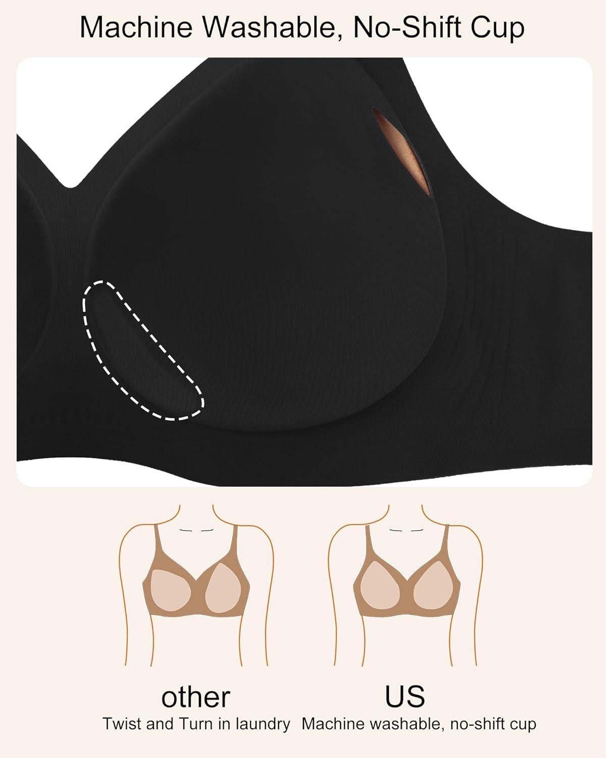HSIA Wireless Tshirt Bras for Women Push Up Seamless Full Coverage Bralette No Wire Everyday Comfort Bra(Black)