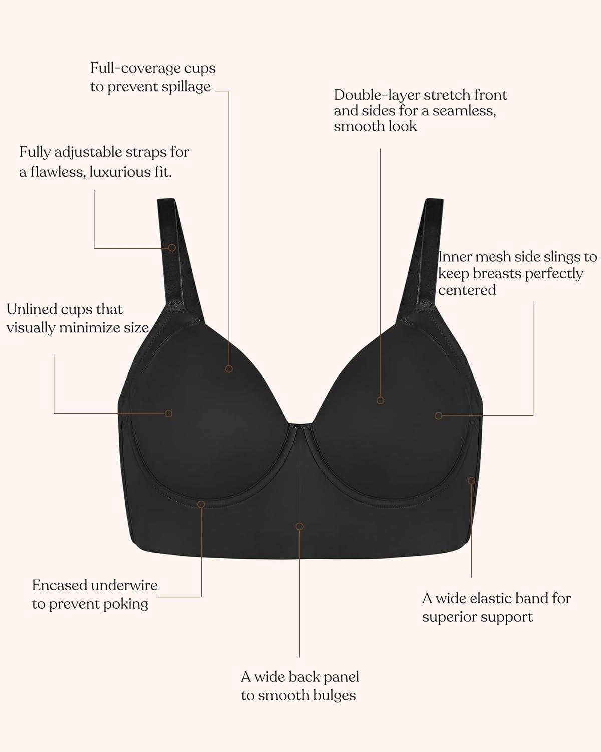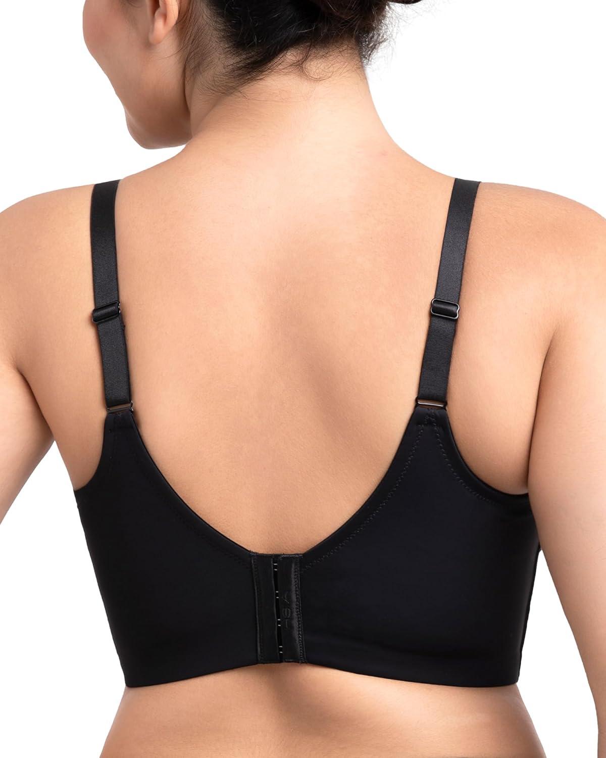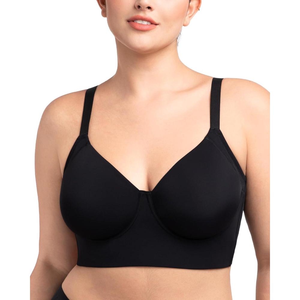 HSIA Women's Minimizer Bra Full Coverage Plus Size T-Shirt Longline Smooth Seamless Unlined Bra Underwire Corset(Black)