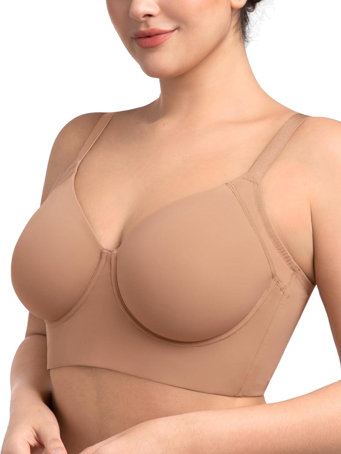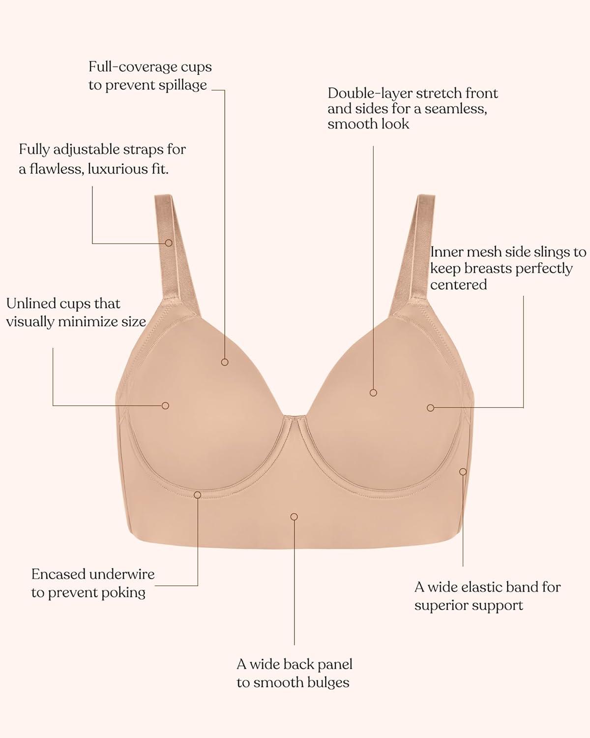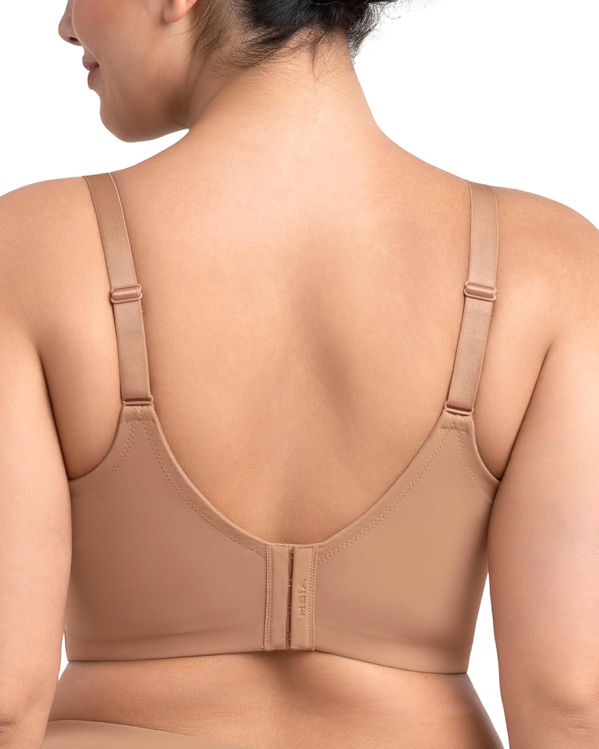 HSIA Women’s Minimizer Bra Full Coverage Plus Size T-Shirt Longline Smooth Seamless Unlined Bra Underwire Corset(Dark Beige)